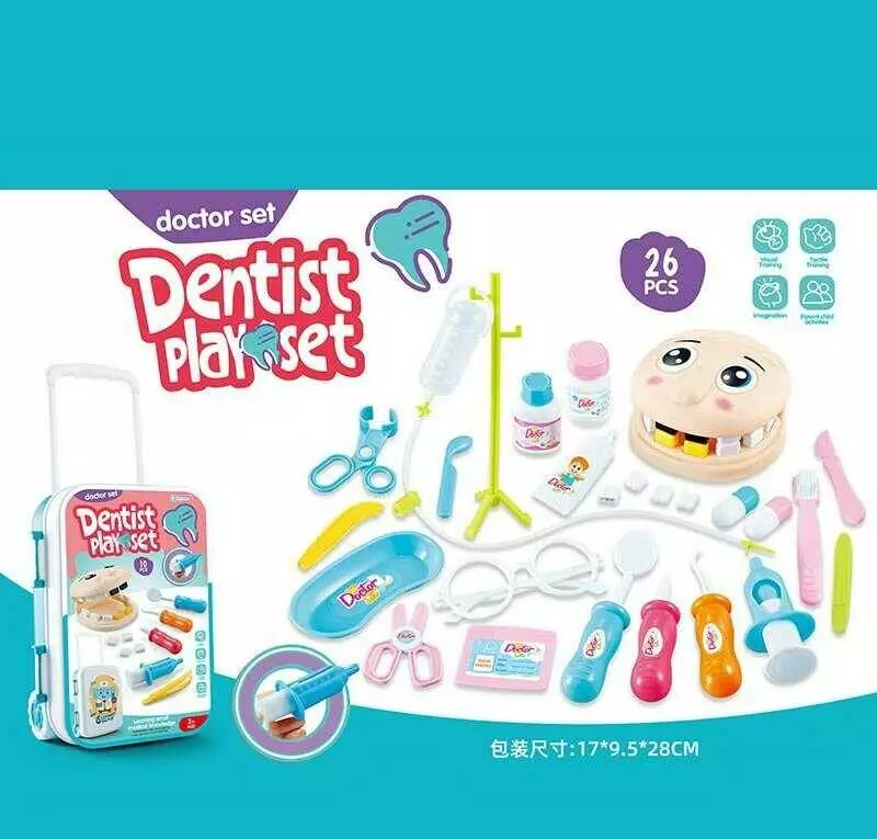 Набір стоматолога QY 852 (48/2) 26 елементів, пацієнт, знімні зуби, інструменти, крапельниця, окуляри, у валізі