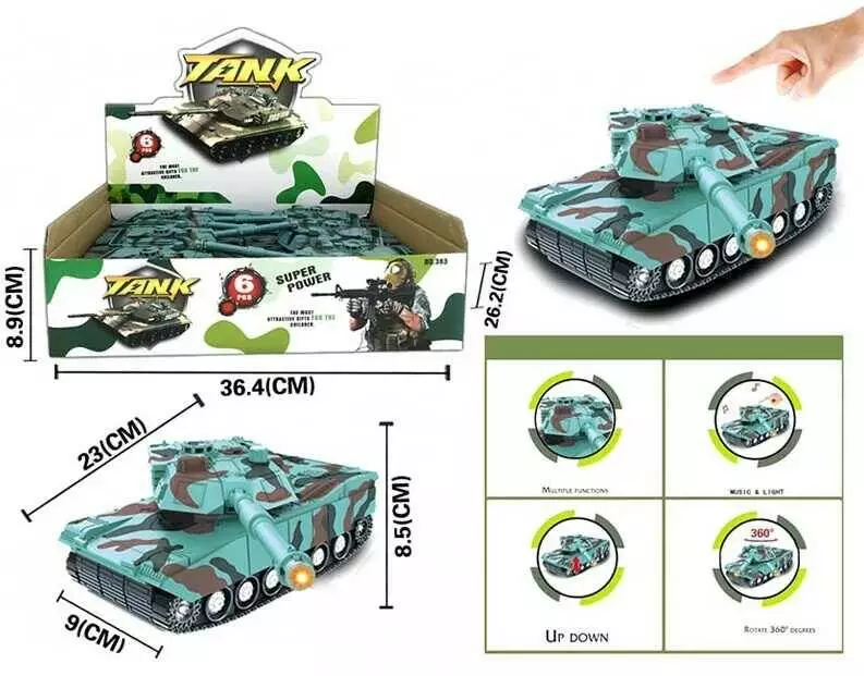 Набір танків 383-22 E (24/2) ЦІНА ЗА 6 ШТУК В БЛОЦІ, підсвічування, звуки, тріскачка, інерція
