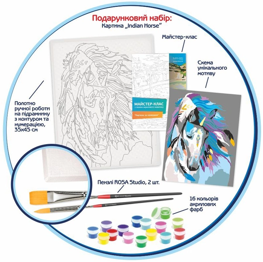 Набір, техніка акриловий живопис за номерами, "Indian horse", ROSA START