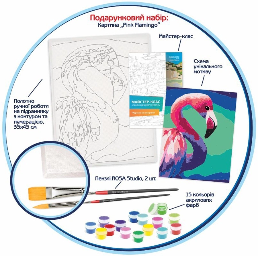 Набір, техніка акриловий живопис за номерами, "Pink flamingo", ROSA START
