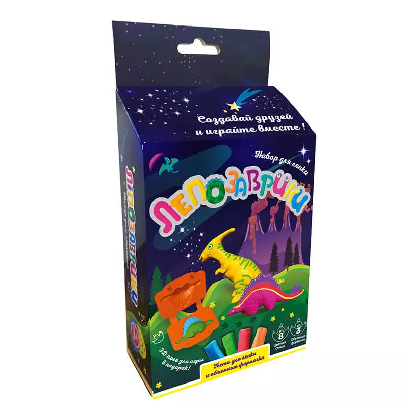 Лепозаврікі - чудовий набір для ліплення, який може здивувати вашого малюка. Маса для ліплення дуже м'яка, апетитна і яскрава. Про безпеку маси взагалі турбуватися не варто, вона створена з натуральних матеріалів. На відміну від всім відомого пластиліну маса завжди м'яка і готова до використання, вона не кришиться. А спеціальні аксесуари для гри підстебнуть фантазію і креативність дитини. За допомогою Лепозавріков можна створювати різні веселі сценарії для ігор