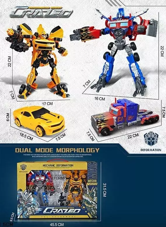Потужні автоботи вже ціле століття протистоять між добром і злом! Трансформер W 8825 A готовий очолити світлу сторону та перемогти темряву. Стильний робот має вигляд могутнього солдата, який в одну мить перетворюється на яскравий автомобіль. А для збільшення бойової сили в наборі можна знайти добре деталізовану зброю. Вирушайте в незабутні пригоди разом із трансформером і здійснюйте справедливість! Особливості: - у наборі 2 могутніх трансформери; - стильний дизайн улюблених героїв дитячих фільмів про роботів; - яскраве забарвлення транспорту з намальованими зображеннями; - високоточна деталізація поверхні іграшки; - кінцівки автобота, що легко провертаються; - потужні аксесуари у вигляді зброї; - стане родзинкою у вашій колекції іграшок; - допоможе відтворити всі сюжетні ігри.