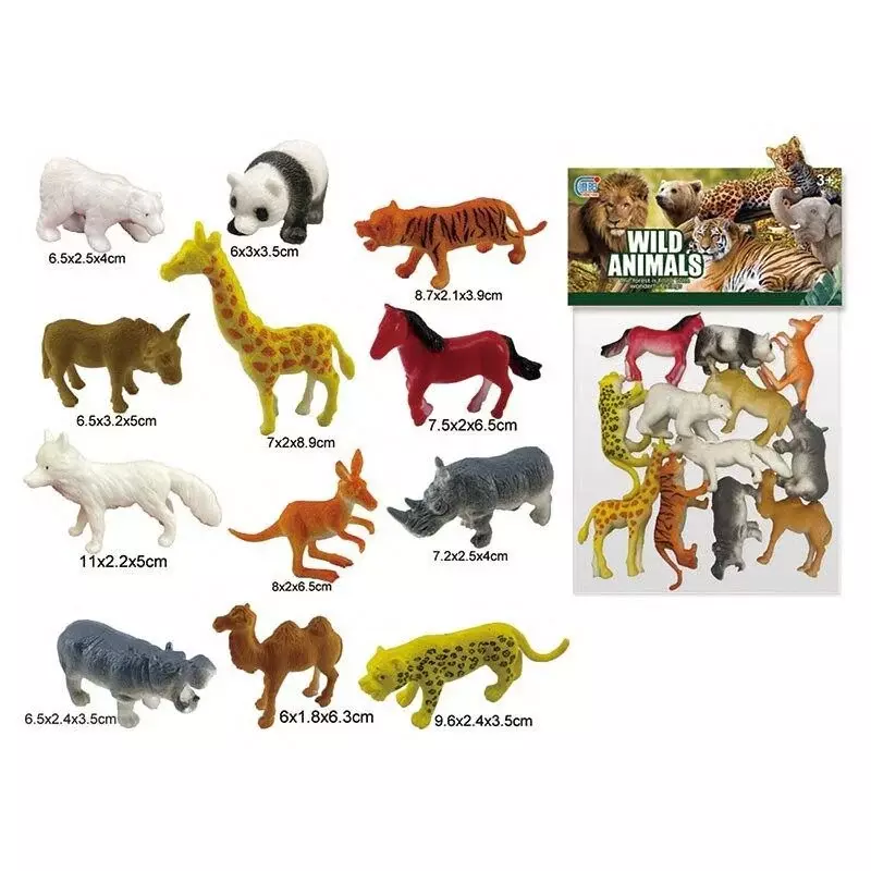 Організуйте справжній зоопарк з екзотичними тваринами прямо в дитячій кімнаті! Набір тварин включає 12 різних тварин, яких можна зустріти в різних куточках світу. Маленькі копії тварин мають відмінну деталізацію та відповідне забарвлення. Збирайте колекцію унікальних тварин та створюйте власний Національний парк! Особливості: - набір включає ігрових 12 елементів; - тварини виконані з гуми та мають тематичне забарвлення; - іграшки мають відмінну деталізацію; - кожна тварина має відповідну текстурну поверхню. Комплектація: - панда; - жираф; - бегемот; - носоріг; - білий вовк; - тигр; - кінь; - як; - верблюд; - кенгуру; - леопард; - білий ведмідь.