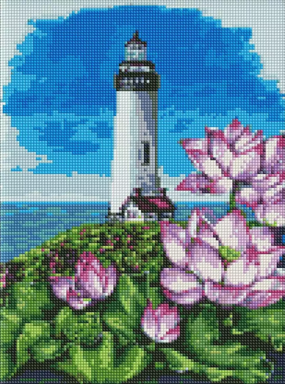 Набір з алмазною мозаїкою "Маяк з лотосами" 30х40см