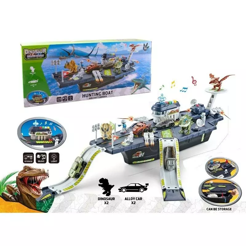 Набір з транспортом XZ-692 корабель, 2 машинки,танк(стріляє),2 диноз.,муз.,світло,кор.,56-23-12,5см.