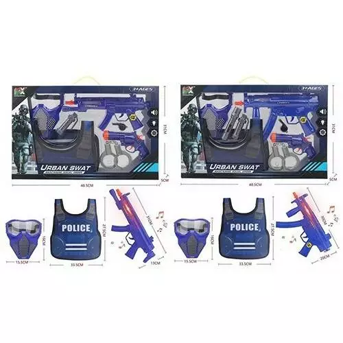 Набір зі зброєю 333F-1-2 поліцейс.,жилет,автомат,пістолет,маска,2види,муз.,світ.,бат.,кор.48-31-5см.