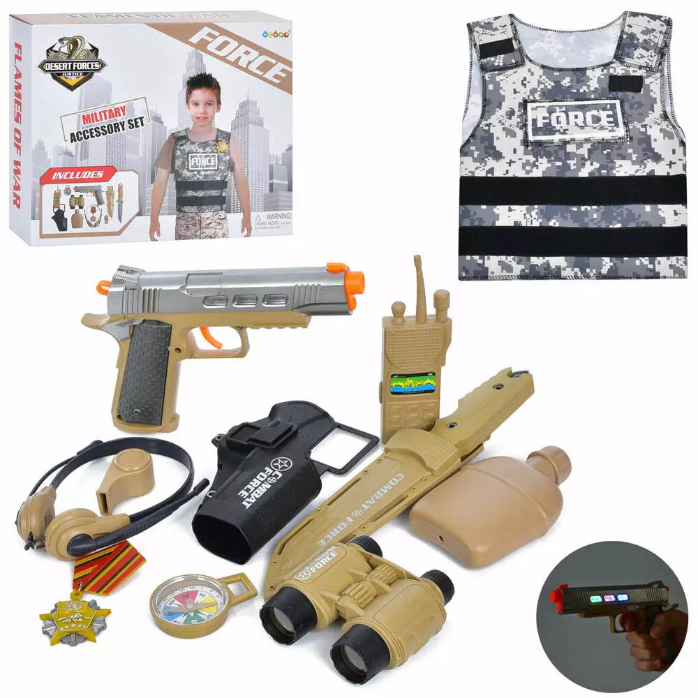 Набір зі зброєю 36160 військовий, пістолет, жилет, муз., світло, бат.(табл.), кор., 29,5-24,5-5 см.