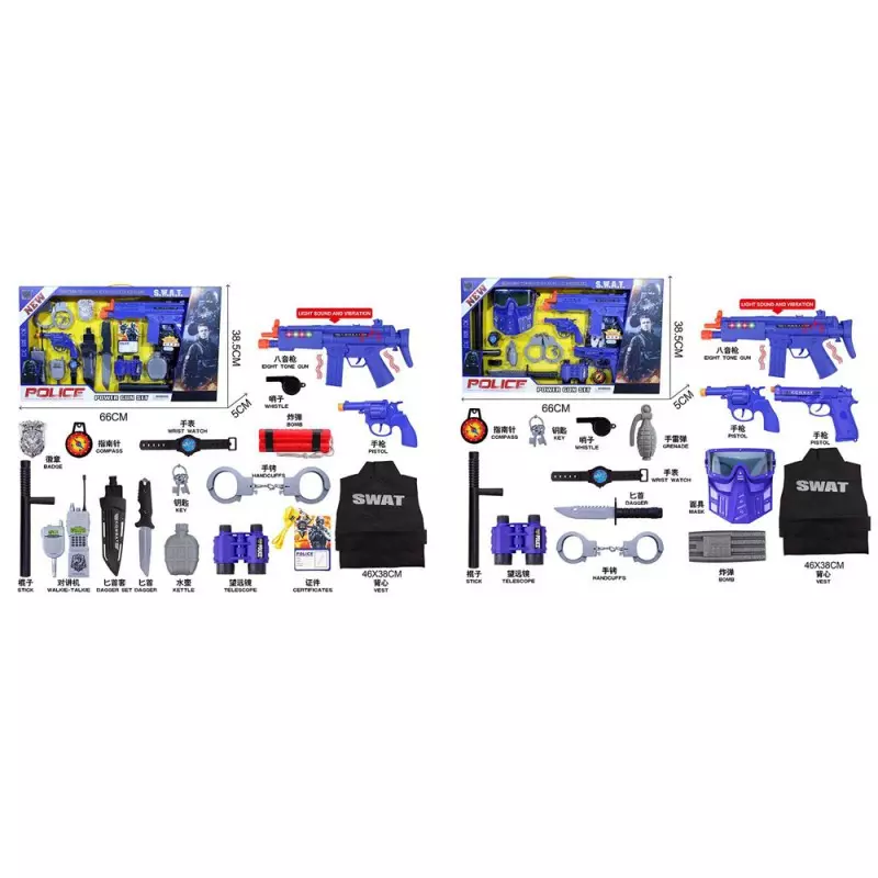 Набір зі зброєю JC002-04A поліція, жилет,пістолет 2шт.,рація,компас,ніж,бінокль,2види,кор.,67-39-5см