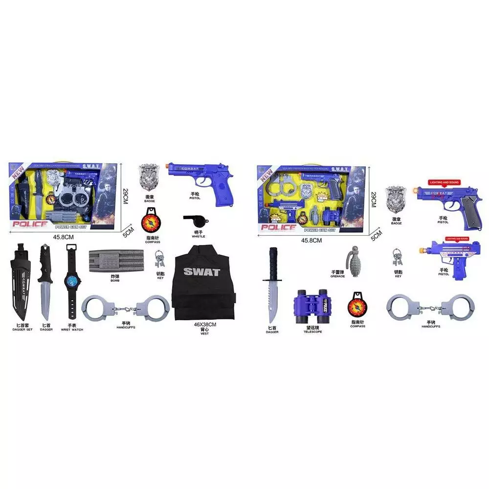 Набір зі зброєю JC007A-08 поліція, жилет, пістолет, рація, компас, ніж, 2 види, муз., кор., 46-29-5