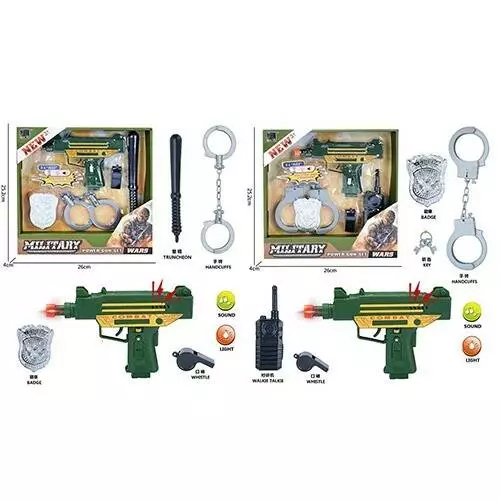 Набір зі зброєю JS024-29 автомат, рація, наручники, 2 види, муз., бат. (табл.), кор., 26-25-4 см.