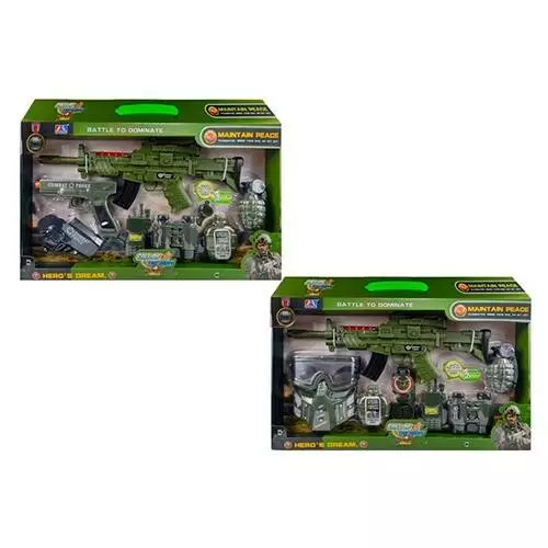 Набір зі зброєю M12-13 військовий, 8 предметів, 2 види, муз., світло, бат., кор., 52,5-31,5-5 см.