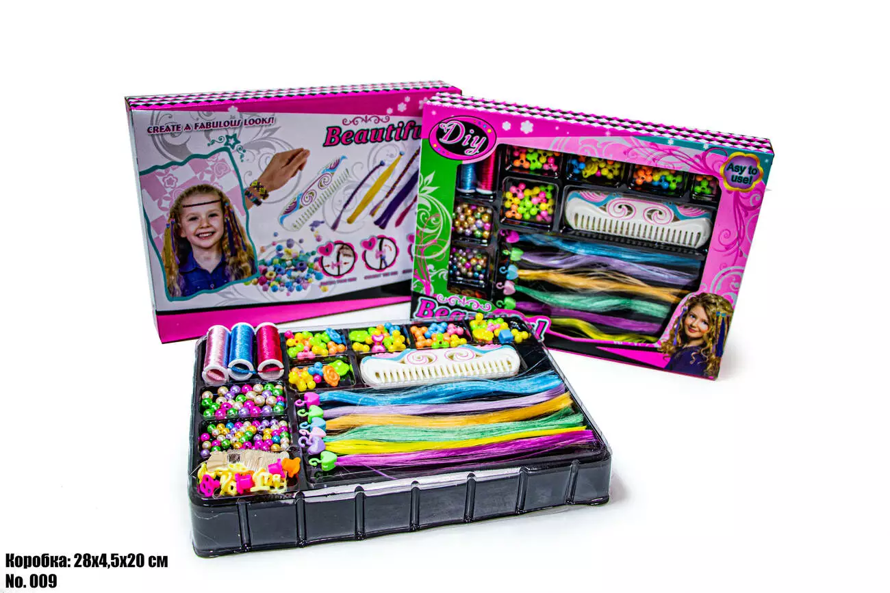 <p><em><strong>Набор Для Девочки 009</strong></em></p><br /> <p>Набор включает в себя большое разнообразие цветных бусин любых форм и размеров, цветные нити, расческу. Отлично подходит как для индивидуальной игры так и для игры в больших и малых группах.Набор также используется для изготовления подвесок, колье, браслетов, фенечек и других украшений из разноцветных бусин. Благодаря набору девочки могут моделировать укладку волос, создавать множество причесок, украшать косички бусинками и пружинками. Способствует развитию внимания, мышления, цветового и зрительного восприятия, координации движений, а также фантазии.</p><br />