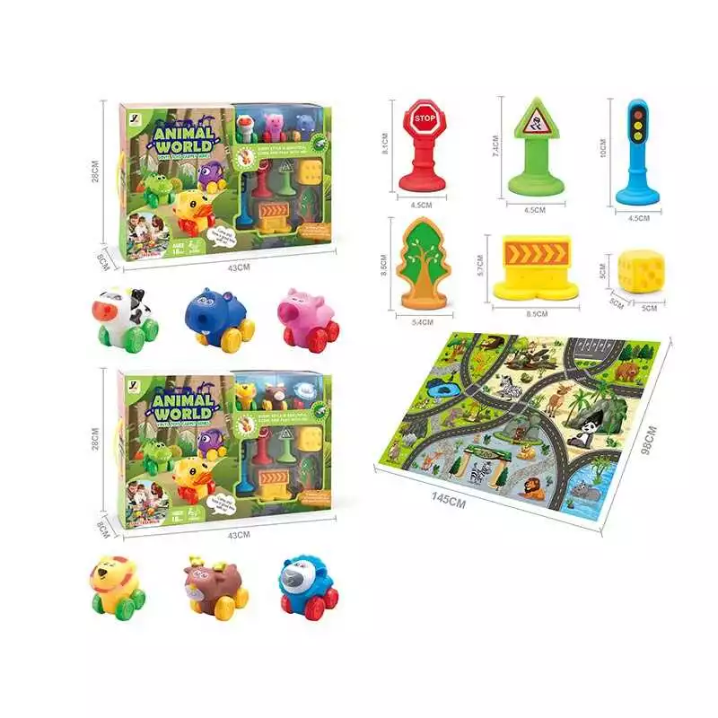 Набір машин JZD - 111 (12) 2 види, ігровий килимок 145х98 см, 3 машинки, декорації, в коробці