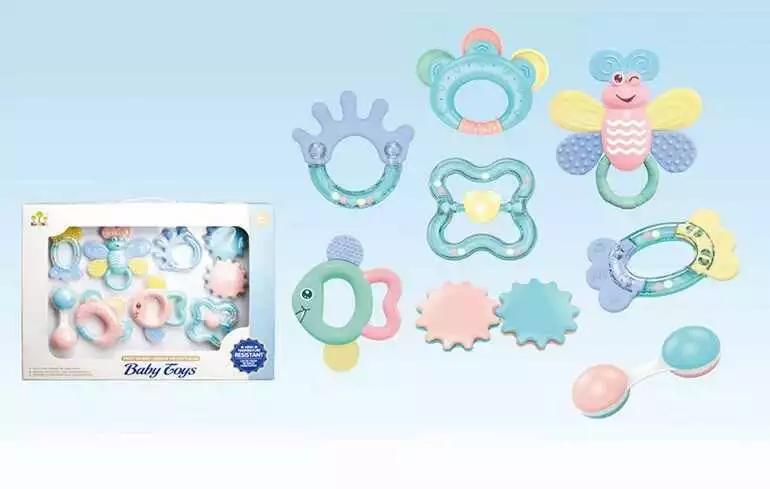 Набір брязкалець SL 84824 (24/2)4 прорізувачі-брязкальця, шестерінка, маракаси, в коробці