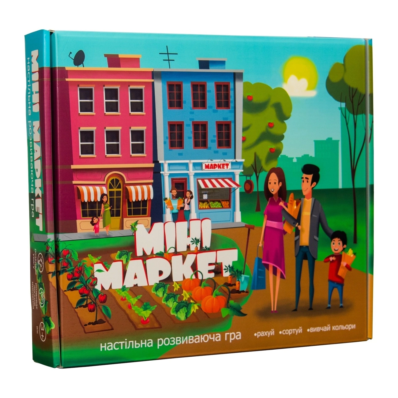 «Міні маркет» - розвиваюча гра для дітей, яка забезпечить легке вивчення квітів, овочів та фруктів, а також поліпшить навички рахунку. Пінопластові овочі та фрукти продемонструють різні форми, види і кольору. Внутрішня частина коробки імітує справжній прилавок, тому ви зможете: сортувати овочі і фрукти за кольором, розрізняти за формою, порівнювати кількість або визначати за картками, де вони ростуть (в землі або на дереві). Комбінуйте картки з цифрами і квітами для створення різних завдань. Просіть дитини пояснювати кожну свою дію і одночасно розвивайте увагу, дрібну моторику і основи математики. вік 3+ Комплектація: 30 овочів і фруктів, кошики, інструкція