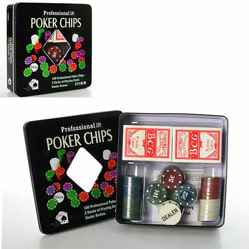 Настільна гра 3896 A покер, фішки, карти 2 колоди, мет. кор., 20-20-5 см