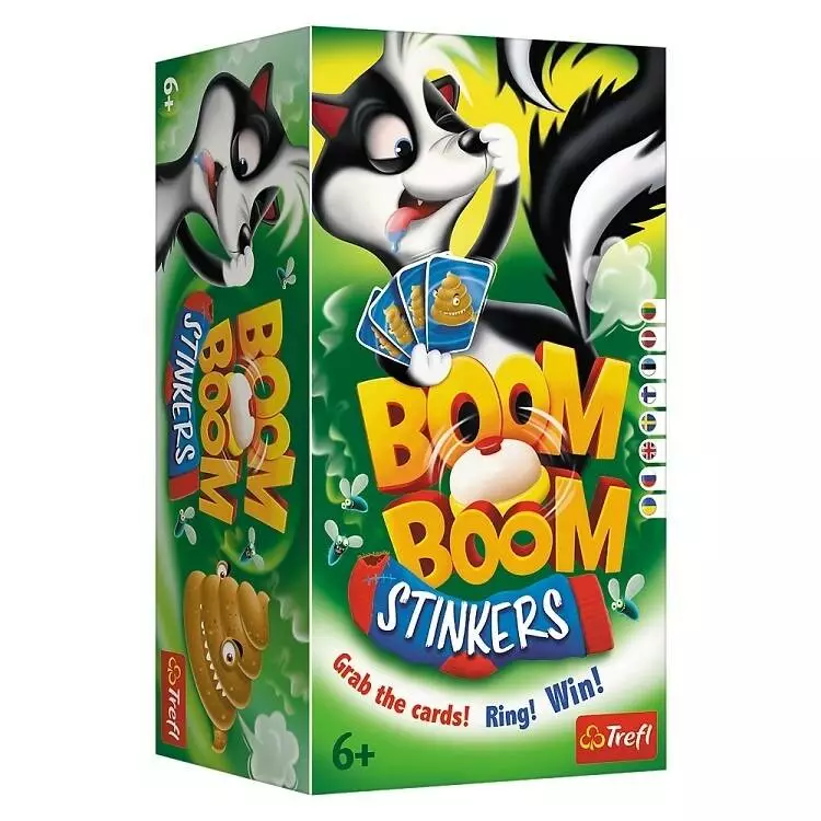 <p>Гра Бум Бум «Вонючки» ідеальна для сім'ї або компанії друзів.</p><p>Це весела і динамічна гра, в якій учасники не нудьгують в очікуванні свого ходу, а грають одночасно. . Зібрати треба кілька комплектів. Звучить просто, але суперники можуть полювати на ті самі карти. Виграє той, хто перший збере свій комплект.<br>Кількість гравців: 2-4<br>Вік: 6+<br>Виробник: Trefl<br>Час гри: 15 хв</p>