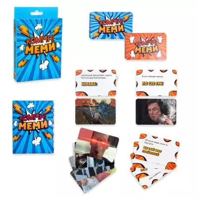 «Комічні меми»– це ще одна гра від Strateg, в якій ми зібрали свіжі та актуальні меми 2022 року в форматі карток і запитань. Задача гравців підбирати картинки до текстів так, щоб це було настільки життєво, що аж смішно. В «Комічні меми» Strateg (30317) 55 карток та інструкція з простими правилами. Гри вистачить на компанію до 6 людей, а невеликий формат коробки дозволить взяти її з собою будь-куди. ? Рекомендований вік: від 16 років. ? Розмір коробки: 14,2 х 9,2 х 2,2 см. ? Комплектація гри: коробка, 55 карток, інструкція. ? Матеріал: картон. ? Вага гри в коробці: 100 г (+-20 г). ? Кількість гравців: від 3 до 6. Гра українською мовою.