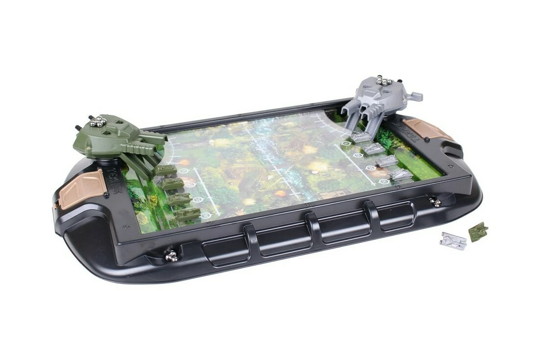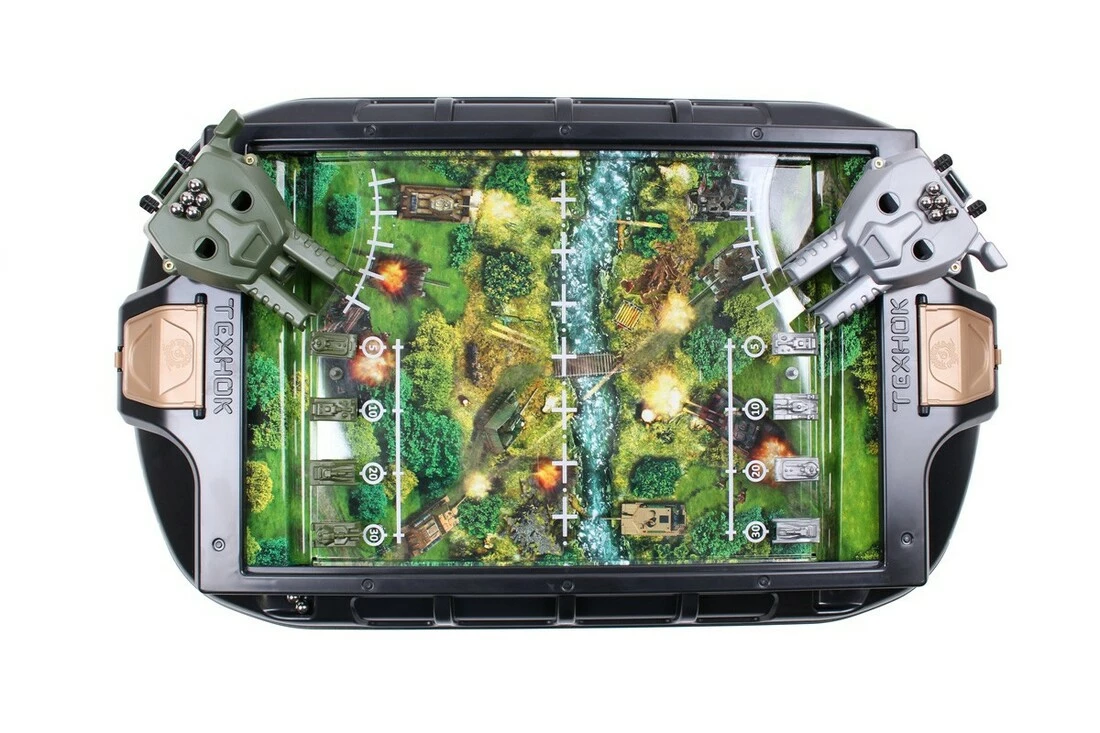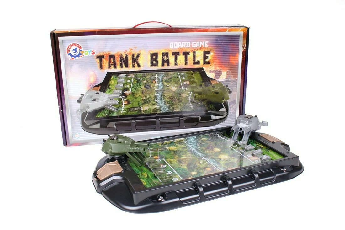 Іграшка "Танкові баталії ТехноК" -захоплива динамічна настільна гра з яскравим ігровим полем. У кожної сторони є велика гармата з металевими кульками-снарядами та 4 танки. Правила гри – дуже прості. Потрібно зарядити гармату двома кульками-снарядами, прицілитись за допомогою об’єктива та здійснити вистріл. Виграє той, хто першим зіб’є всі танки противника. Іграшка "Танкові баталії ТехноК" буде цікавою дітям та дорослим. Це також чудова можливість грати командами та влаштовувати турніри. Іграшка для дітей віком старше 5 років.