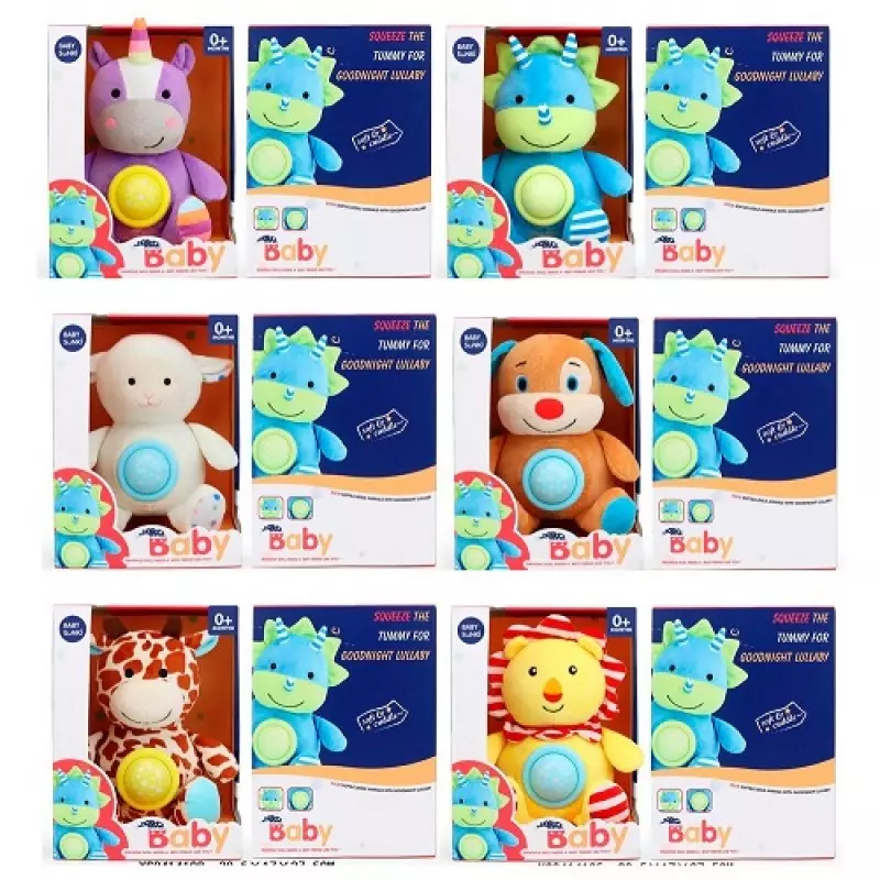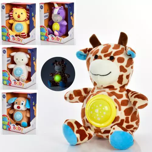 Нічник 1843-1-2-3-4-5-12 тварина, плюш, 5 видів, муз., світло, бат., кор., 20,5-28-16 см.