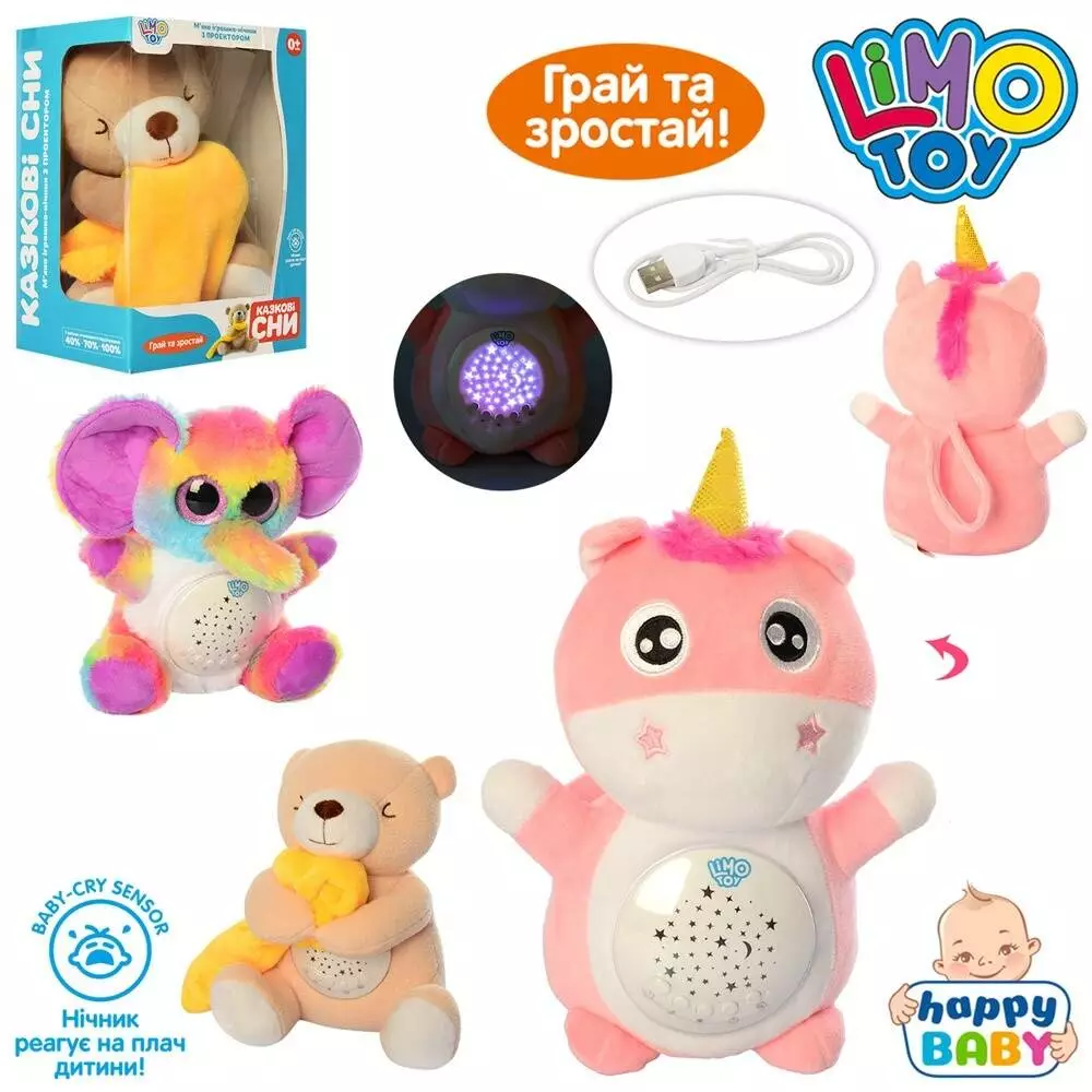Нічник HB 0012 ABC тварина, реаг.на плач, проектор, таймер, 3види, USB, муз., кор., 25-18-14,5см.