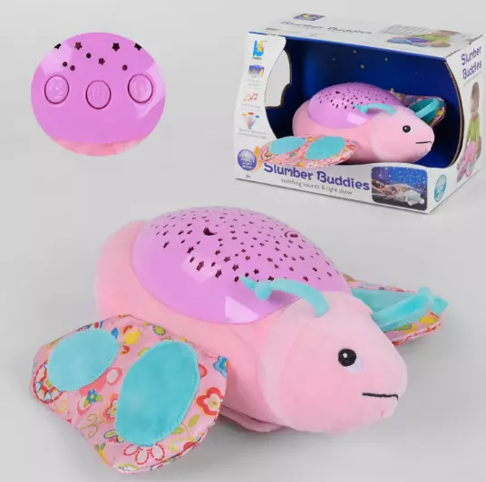 Дитячий нічник у формі черепашки JLD 333-29 A оснащений невеликим проектором зоряного неба. Конструкція виготовлена з суміщених матеріалів: первинної пластмаси та текстилю. Приємна оку форма виконана в дитячій стилістиці, рожева метелик з великими очима і милою посмішкою, виглядає по справжньому доброю і заспокійливою. На спинці розташовані 3 кнопки: - включення і виключення; - регулювання гучності звуку тихо / голосно; - активація світла. Нічник працює від 3-х батарейок типу "АА" - не додаються.