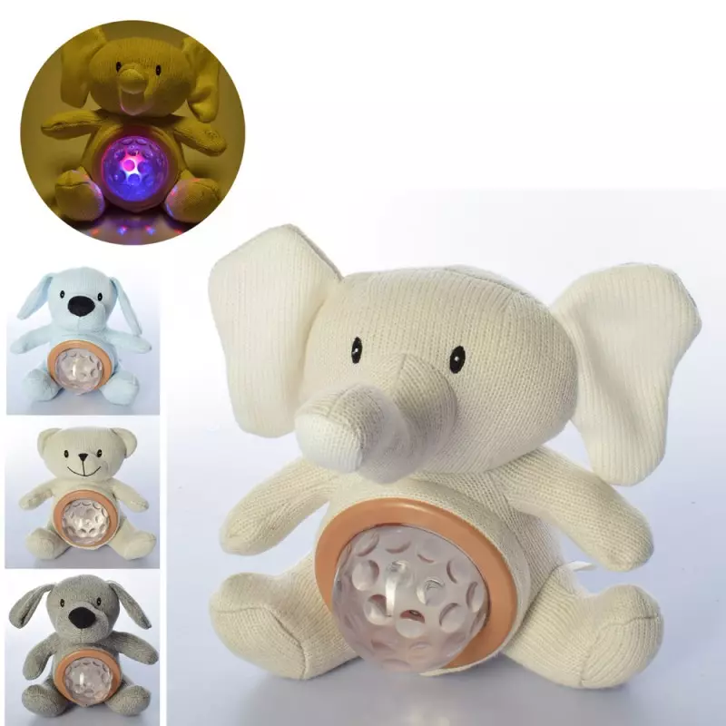 Нічник M 4185-1 тварина, 2 режими, проектор, плюш, муз. (англ.), світло, мікс видів, 14-21-13 см.