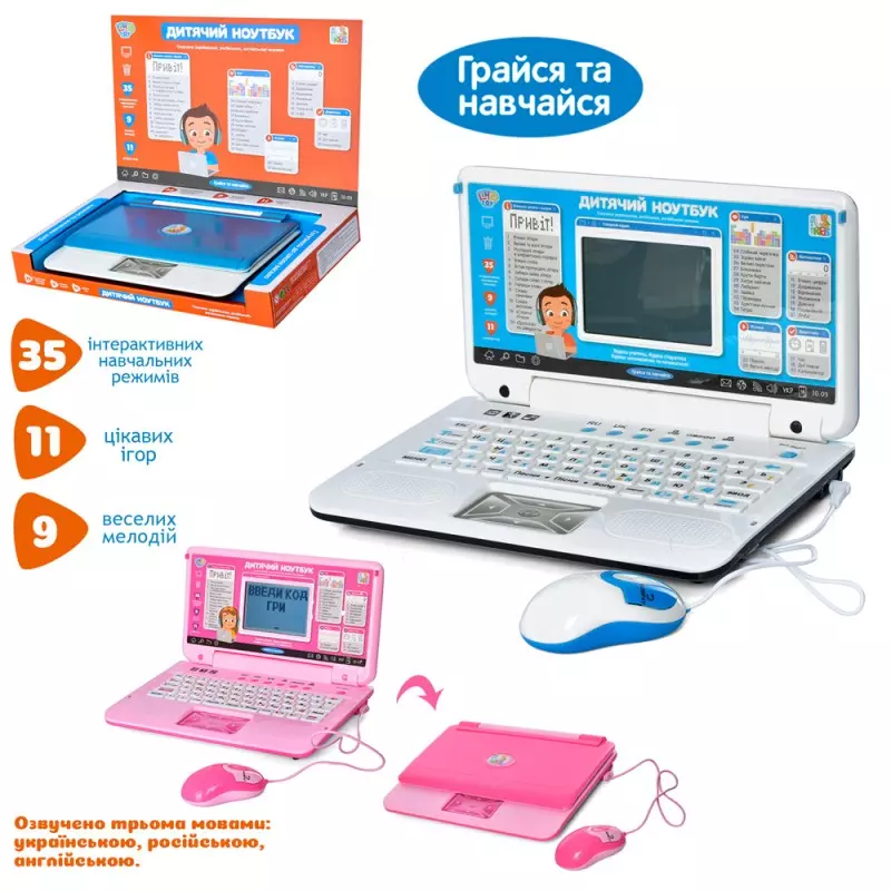 Ноутбук SK 7442-7443 навч.,35 функц.,11 ігр,мишки,2 кольори,муз.(рос.,укр.,анг.),бат.,кор.,38-26-5см