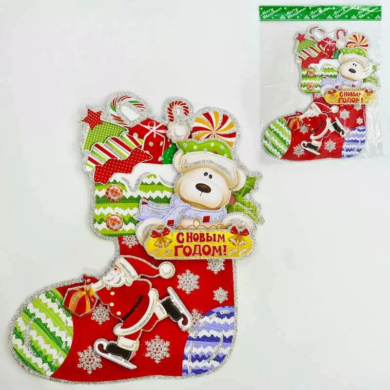 Новорічна прикраса C 30267 Носок з подарунками (400) ЦІНА ЗА 1 ШТ