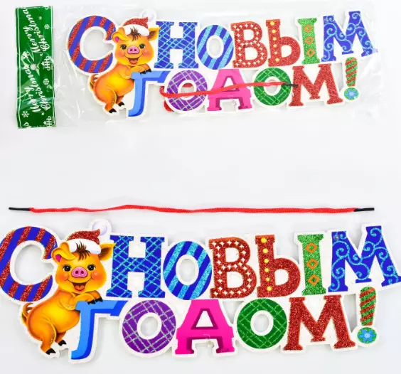 Новорічна прикраса C 30271 (400) "З Новим роком" на шнурку, ЦІНА ЗА 1 ШТ