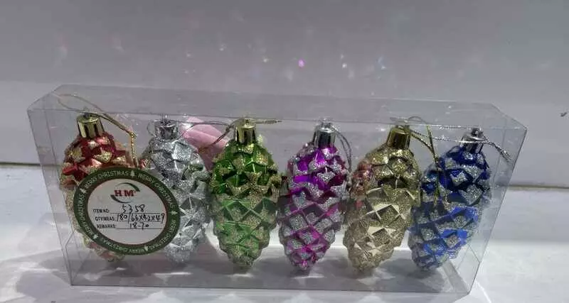 Новорічні прикраси D 35030 (180) 6 шт., шишка, висота 9 см, в слюді