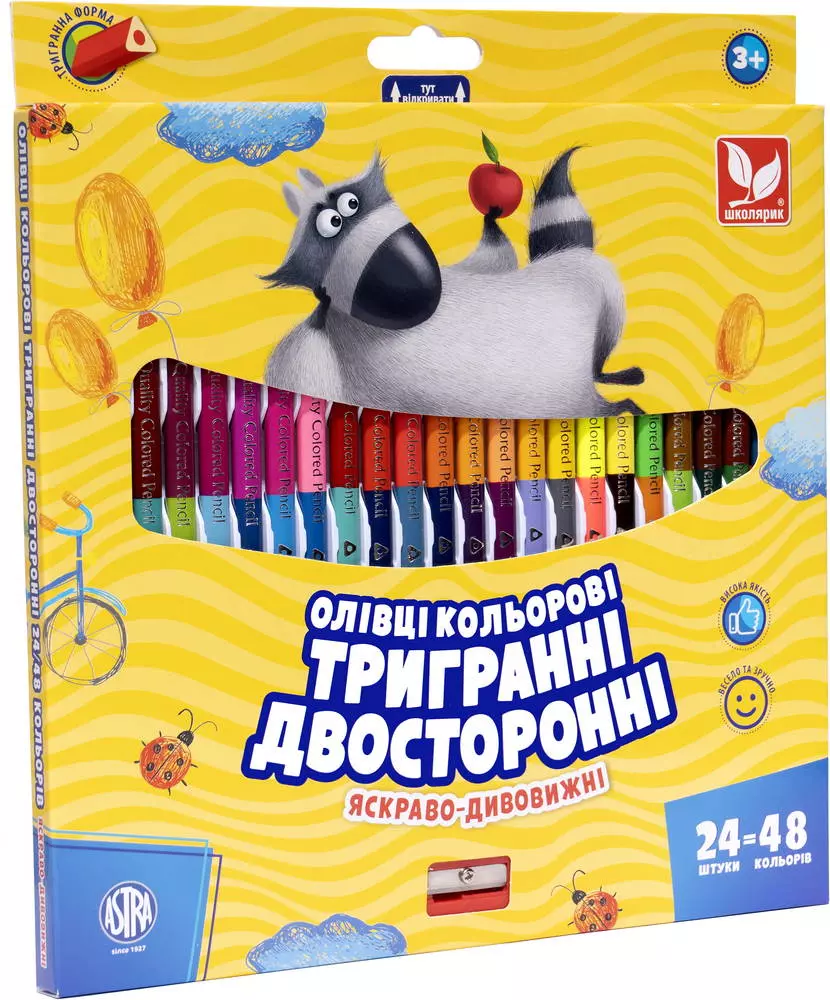 Олівці кольорові тригранні двосторонні + чинка - 48 кольорів (24 шт.)