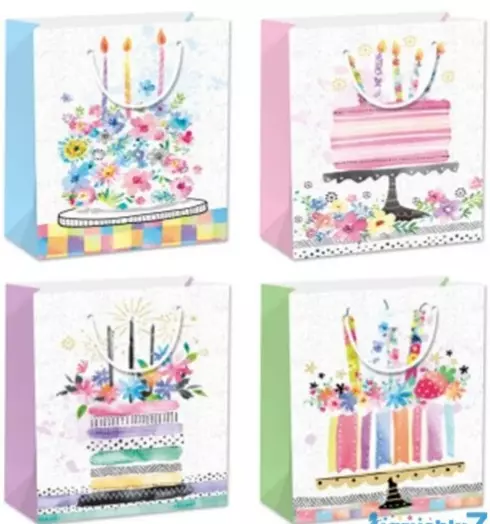 Подарунковий пакет - С 49741 Розмір: 26 х 10 х 32 см. Кількість видів – 4; Тематика: із днем народження; Тип ручки: стрічка; Оздоблений – 3D малюнок.