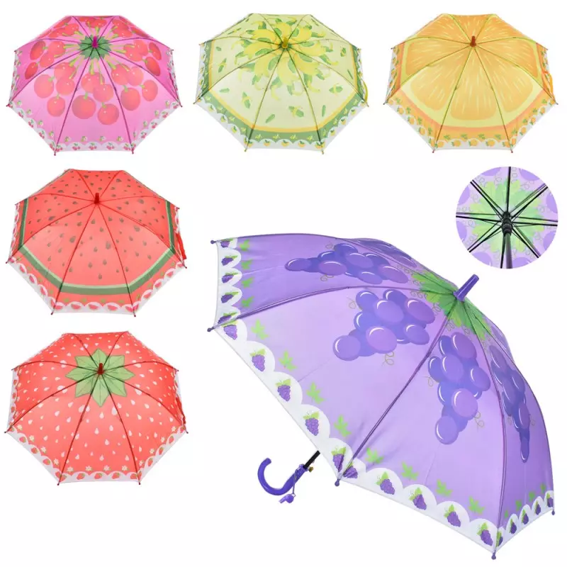 Парасолька дитяча MK 4912 довж.66см,тростина 61см,діам.88см,спиця 48см, тканина,свисток,6 видів,кул.