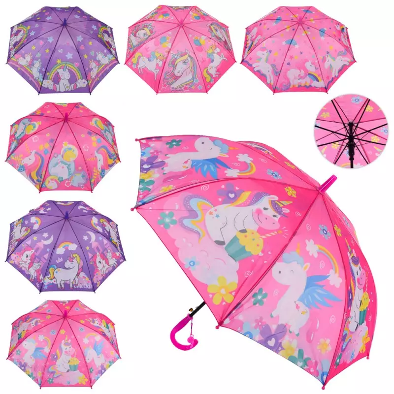 Парасолька дитяча MK 4914 довж.68см, тростина 62см,діам.84см,спиця 48см,тканина,свисток,6 видів,кул.