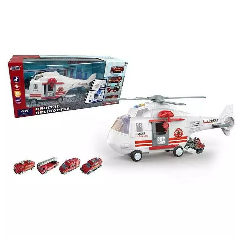 Парковка SJ 667 A-1 (24) “Гелікоптер”, звук, підсвічування, 4 пожежні машини, інерційний механізм, в коробці