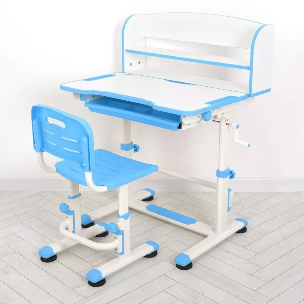 Парта M 4819-4 зі стільцем, полиця, регул. висота, підставка для книг, синій.