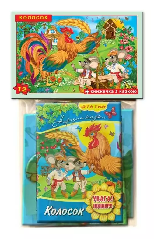 Логічна гра-Пазл для самих За мотивами української народної казки "Колосок". На величезному ігровому полі розміром 300 х 420 мм зображений сюжет з казки. Поле розрізати на 12 частин, з яких потрібно зібрати цілу картинку. У комплекті є повнокольоровий книжечка з казкою. Дитячі казки розширюють словниковий запас малюка, допомагають правильно будувати діалог, розвивають зв'язну логічну мова. Складаючи елементи пазла малюк навчиться складати з частин ціле, зіставляти окремі елементи за формою, кольором, розміром. Казка допомагає формувати основи поведінки і спілкування. Казки розвивають фантазію, уяву і "слухову" пам'ять дитини, а так само його творчий потенціал. Гра розвине просторову уяву, образне і логічне мислення, сприйняття, дрібну моторику рук. ПРАВИЛА ГРИ 1. Складіть на столі картинку-пазл, нехай дитина уважно розгляне його. 2. Вийміть один (потім кілька) елементів пазла, покладіть поруч лицьовою стороною вгору. Запропонуйте дитині покласти його (їх) на місце. 3. Поступово ускладнюйте завдання. Вийміть один (потім кілька) елементів, переверніть його (їх) лицьовою стороною вниз, покладіть поруч. Запропонуйте дитині правильно покласти його (їх) на місце. 4. Розберіть пазл на окремі елементи (перемішайте елементи), запропонуйте дитині самостійно зібрати картинку.