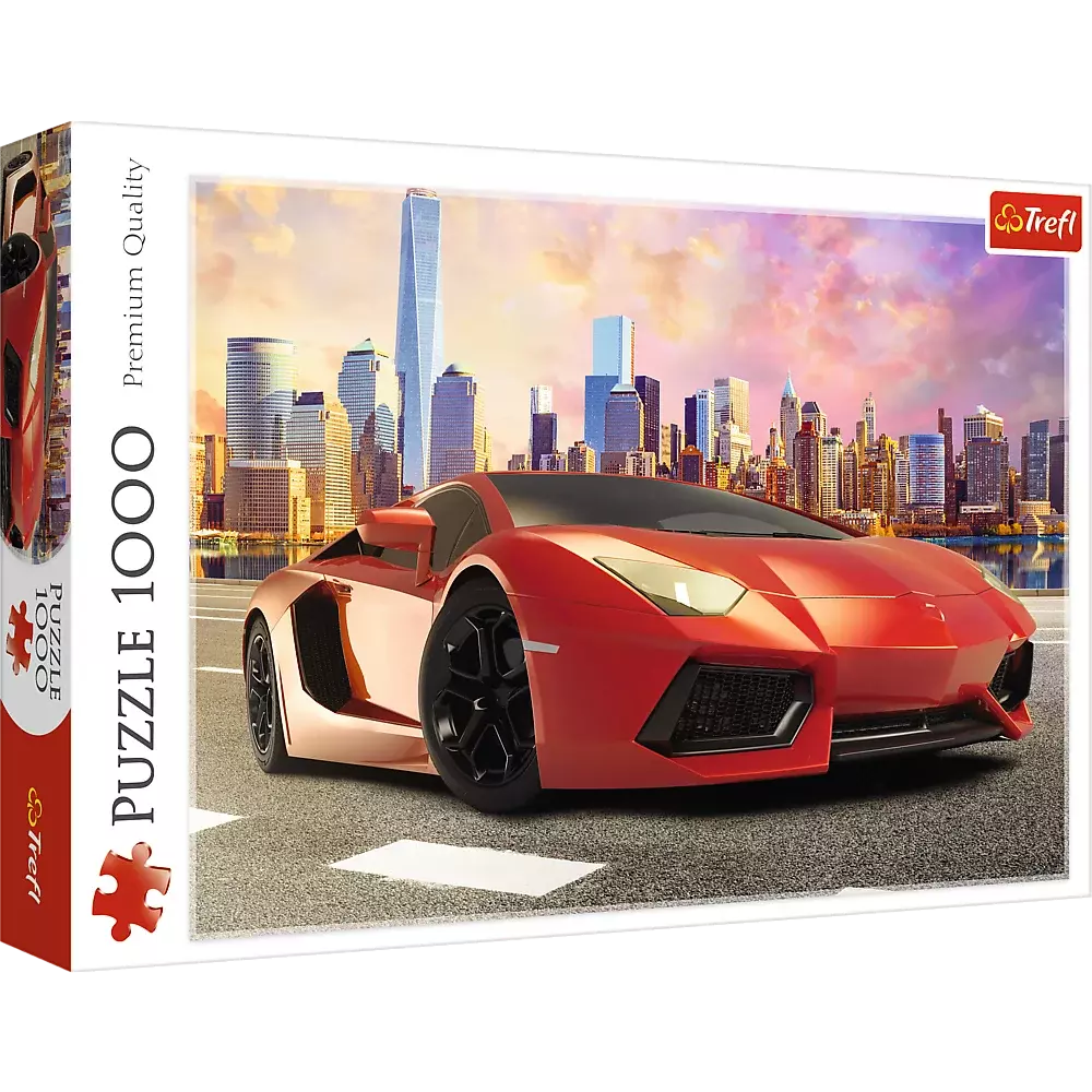 Пазли, що складаються з 1000 елементів, "Авто під заходом сонця". Після складання буде створений малюнок розміром 683х480 мм. Виріб виготовлено з якісних матеріалів з використанням спеціального каландрового світловідбиваючого паперу, який полегшує складання. Виріб вироблено в Польщі, для виробництва використовувалися екологічні матеріали.