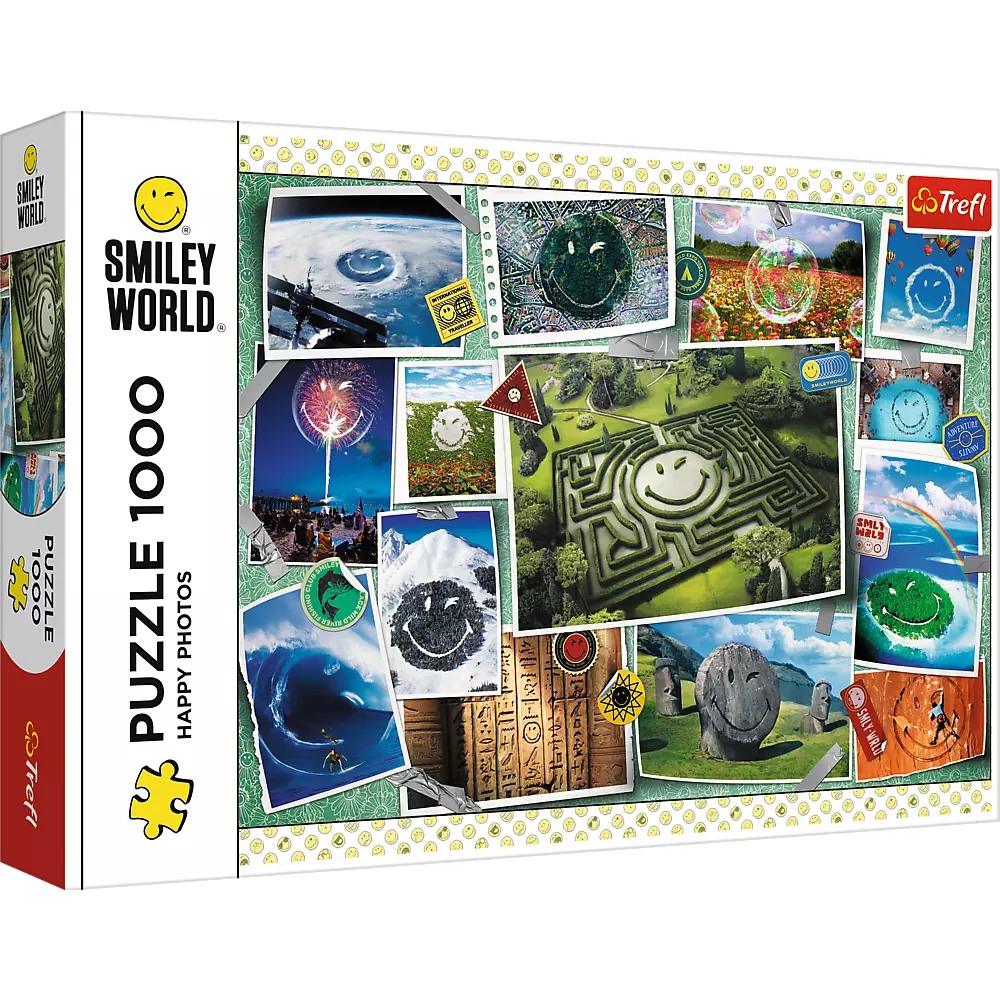 Пазли Trefl виготовлені з високоякісного спеціального світловідбиваючого паперу, екологічного матеріалу, який полегшує збирання. У пазлі Trefl на 1000 елементів - Smiley World , фігурки смайликів із різними виразами обличчя з'являються по всьому світу. Розмір готового зображення 68 х 48 см