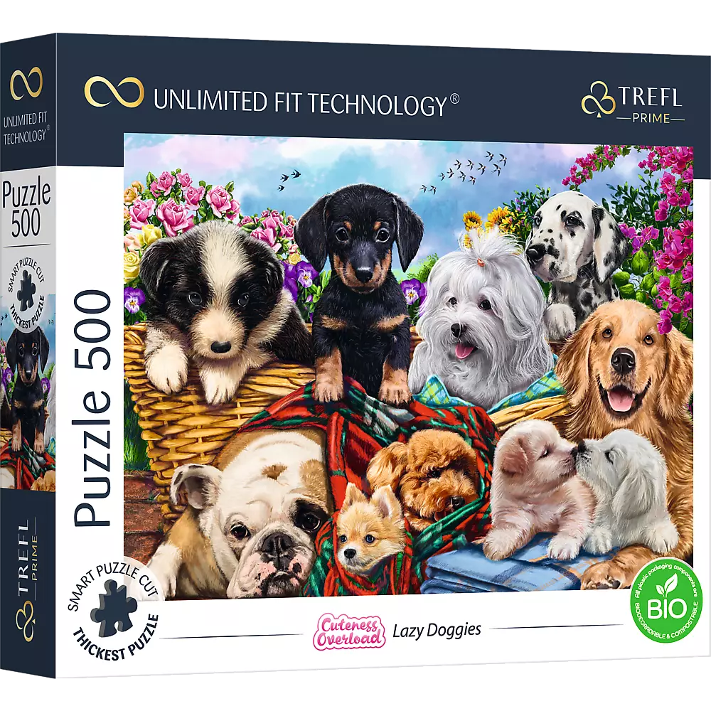 <p>Пазли із серії Trefl Prime Unlimited Fit Technology, що складається з 500 елементів , призначені для справжніх любителів головоломок! У пазлах Lazy Doggies зображені милі собаки .</p><p>Після оформлення вийде картина розміром 480х340 мм.<br>Пазли виготовлені з якісних матеріалів з використанням найтовстішого картону, особливого способу вирізання та унікальних форм. Завдяки цьому ми можемо створити індивідуальний колаж і легко перенести пазл. Крім того, окремі елементи виготовлені з екологічних матеріалів. Сумка для жолоба та наклейки виготовлені з біорозкладаної фольги. Вироби не упаковані в термоусадочну упаковку.</p><p>вік 10+</p>