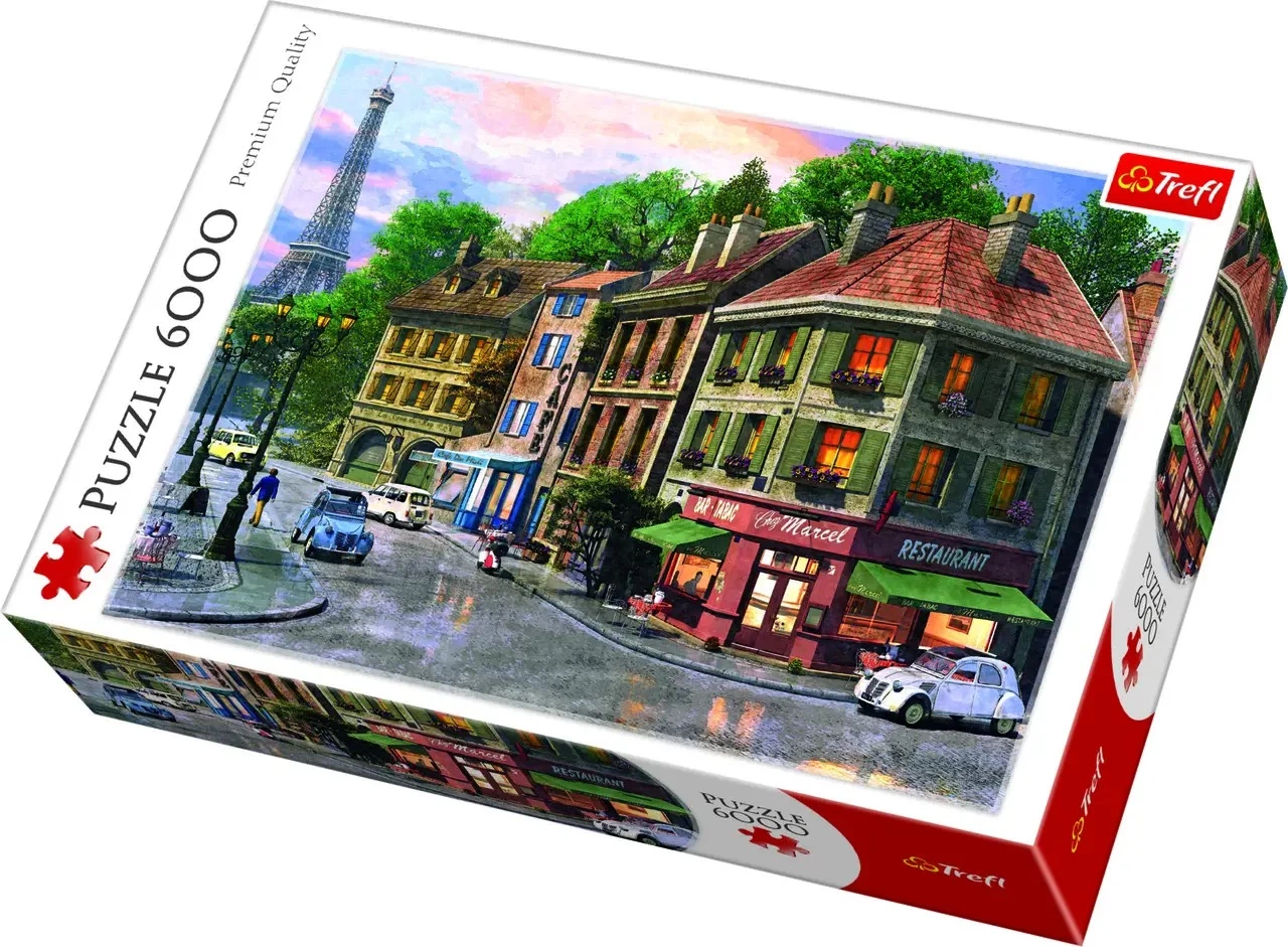 Пазл значних розмірів, що складається з 6000 деталей "Вулиці Парижу". Після складання буде створений малюнок розміром 1360х960 мм. Виріб виготовлено з якісних матеріалів з використанням спеціального каландрового світловідбиваючого паперу, який полегшує складання. Виріб вироблено в Польщі, для виробництва використовувалися екологічні матеріали.