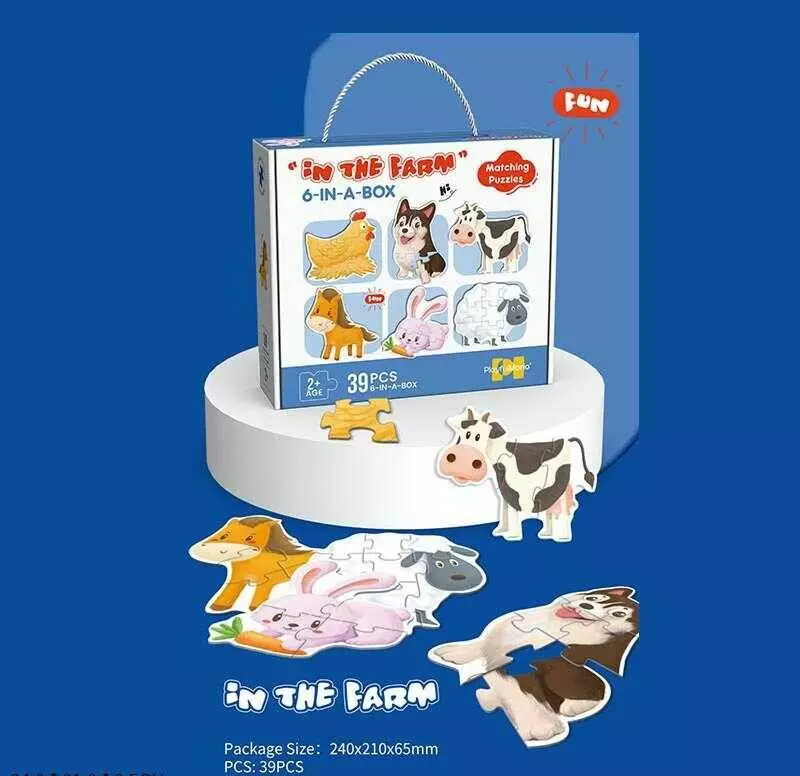 Пазли 88766 (60/3) 39 елементів, ""На фермі"", 6 тваринок, 6 карток-прикладів, в коробці