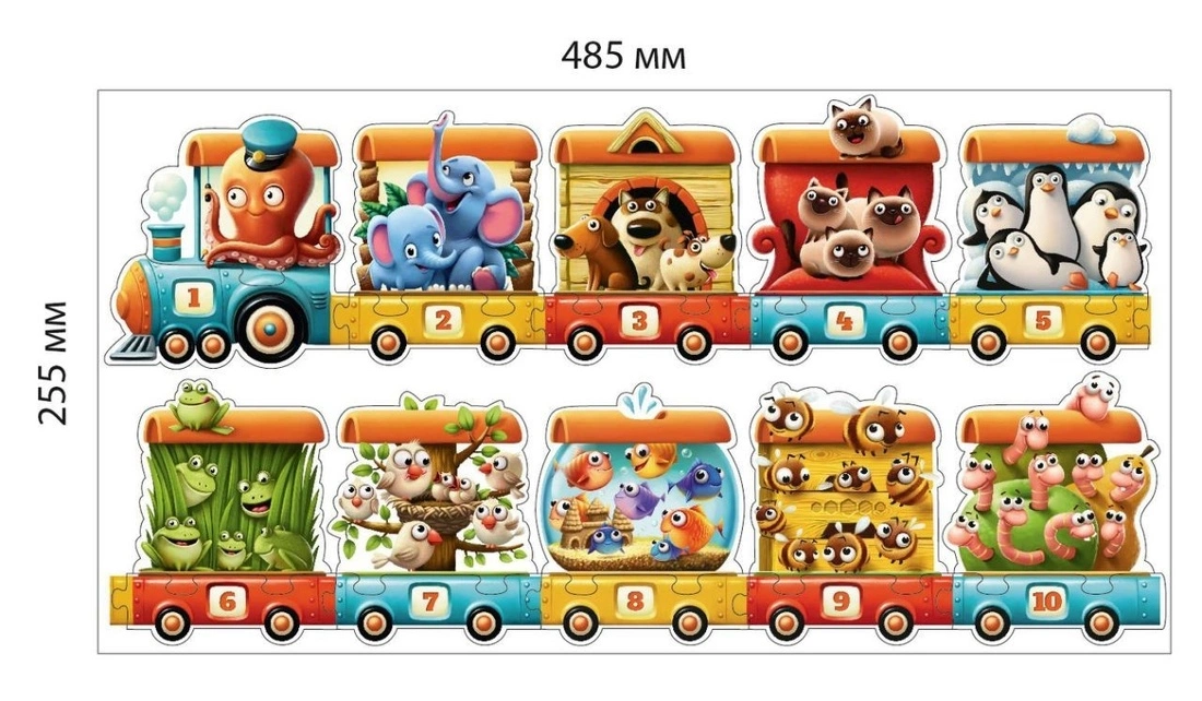 Розвиваючий пазл Puzzlika Поїзд (13050) це не просто забавна головоломка з 20 шматочків картону, а й наочне навчальний посібник, який допомагає малюкам вчитися рахувати та запам'ятовувати числа. Вказує, що поїзд складається з пронумерованих кают, кількість пасажирів відповідає складеним номерам. Особливості гри: Нові прихильники зможуть збирати головоломки самих графічних відділів, представлених в цій колекції, кумедні картинки з тваринами, які йдуть з пронумерованими возами. Тренуйтеся з тваринами, і це буде відмінним засобом навчання при зустрічі з дитиною з номерами та серійними номерами. Збірка головоломок допоможе батькам урізноманітнити діяльність дітей, розвинути їх раціональне і просторове мислення і поліпшити дрібну моторику рук. Картонні деталі високої щільності сертифіковані, але втрачають форму і не деформуються з часом. У графічному картонному тубусі з головоломкою з мотузки дуже легко ходити по магазинах, і ви можете взяти його з собою в подорож і на прогулянку Підходить для дітей від 2-х років.