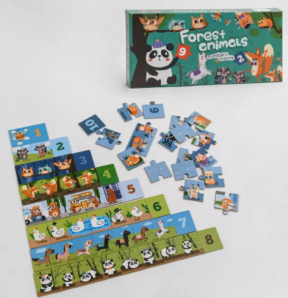 Природа завжди була центром уяви кожної дитини. Додайте до нього тварин і навчання стане для них супер забавою. Поринь у уяву своїх дітей разом за допомогою пазл С 48699 із зображенням лісових тварин. Особливості моделі: - покращує зорово-моторну координацію та просторове виховання - сприяє розвитку дрібної моторики – захоплення, розміщення, видалення та інші дії; - допоможе розвинути у дітей навички візуального сприйняття, які необхідні в математиці та письмі; - вчіть числа у захоплюючій ігровій формі за допомогою головоломки у вигляді лісових тварин. Опис: 1. Кількість тварин та номер вагона з'єднуються у довгий поїзд. Вони мають однакові контури, щоб діти не засмучувалися. 2. Багате поєднання кольорів, з милою мультиплікаційною анімацією, відповідно до дитячої естетики, допомагаючи дітям вивчати числа та розпізнавати тварин. 3. Ця іграшка-пазл прикрашена симпатичними мультяшними поїздами та маленькими тваринами. Він може створювати милі пазли з тваринами, може допомогти малюкам покращити концентрацію та вирішити головоломки. 4. На звороті пазла є числа та кольорові блоки. Вивчайте числа та розпізнавання кольорів, граючи в головоломку.