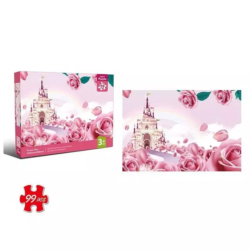 Складання пазлів легко виконає завдання з розвитку логічного мислення під час веселої гри. З цими пазлами впорається дитина будь-якого віку, адже елементи зображення достатньо великі, що дозволяє їх легко тримати в руках. А гарна картинка настільки сподобається дитині, що цей пазл захочеться збирати знову та знову. Особливості: - склавши пазл можна побачити чарівний палац; - пазл складається з 99 елементів; - розмір готового зображення 420х280 мм; - всі елементи виконані у достатньо великому розмірі, що є безпечним для найменших; - пазли виготовлені з якісного картону, що подарує їм довге життя.