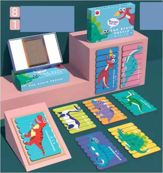 Пазли дерев'яні С 49378 (36) “Динозаври”, пазли-палички, двосторонні, в коробці