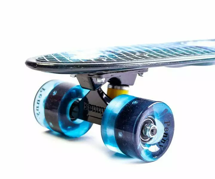 <p>Модный Penny Board "Galaxy" с темно-синими светящимися колесами - прекрасный выбор для стильной молодежи, которая ищет оригинальную расцветку.</p><br /> <p>Описание:</p><br /> <p>-изделие торговой марки "Penny Board";</p><br /> <p>-высокопрочный карбон-пласт в основе деки: легкость и долговечность;</p><br /> <p>-компактный и вместительный размер доски: 57 х 15 см, толщина 11 мм;</p><br /> <p>-узорный рисунок с антискользящим эффектом;</p><br /> <p>- логотип Penny на деке.</p><br /> <p>-прочная крашенная металлическая подвеска;</p><br /> <p>-высококачественные подшипники ABEC-9;</p><br /> <p>- светящиеся колеса из полиуретана (PU) -бесшумность и маневренность;</p><br /> <p>-уровень жесткости колес – 84А;</p><br /> <p>-предел нагрузки - 75 кг;</p><br />