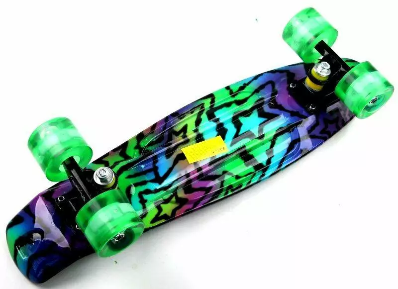 <p><strong>Penny Board "Star" </strong>- универсальная модель пенниборда, которая прекрасно подходит для любителей эксклюзивных цветов. Легкость, яркая расцветка и недорогая цена - <strong>Penny Board "Star"</strong> станет лучшим другом для тех, кто давно мечтал о чем-то неординарном.</p><br /> <p>Описание и преимущества Penny Board "Star":</p><br /> <ul><br /> <li>изделие торговой марки "Star";</li><br /> <li>высокопрочный пластик в основе деки - легкость и долговечность;</li><br /> <li>компактный и вместительный размер доски: 55 х 15 см, толщина 11 мм;</li><br /> <li>подходит для детей, подростков и взрослых;</li><br /> <li>узорный рисунок с антискользящим эффектом;</li><br /> <li>прочная металлическая подвеска;</li><br /> <li>добротные подшипники ABEC-7;</li><br /> <li>светящиеся PU-колеса из полиуретана - бесшумность и маневренность;</li><br /> <li>уровень жесткости колес – 94А;</li><br /> <li>предел нагрузки - 80 кг;</li><br /> <li>дизайн и цветовое оформление: дека с рисунком звезд (салатовые светящиеся колеса).</li><br /> </ul><br /> <p>Купить Penny Board "Space" и подарить себе счастье от активной жизни</p><br /> <p>Модный и яркий <strong>недорогой Penny Board "Space"</strong> станет для вас лучшим другом . Выбрали модель скейта, определились с цветом? В таком случае ничто не мешает Вам уже сейчас осуществить свою мечту. Оформив заказ на нашем сайте, уже через 1-2 дня с момента отправки, вы можете получить свой товар на складе курьерской службы.</p><br />