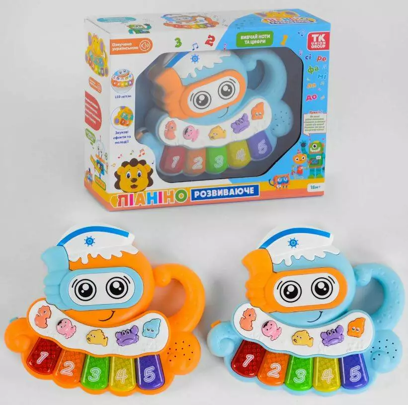Піаніно 93888 (48) "ТК Group", "Крабик", 2 кольори, УКРАЇНСЬКЕ ОЗУЧУВАННЯ, підсвічування, вивчення цифр, мелодії, ноти, в коробці [Коробка]